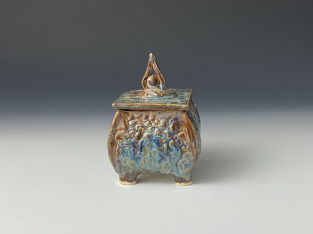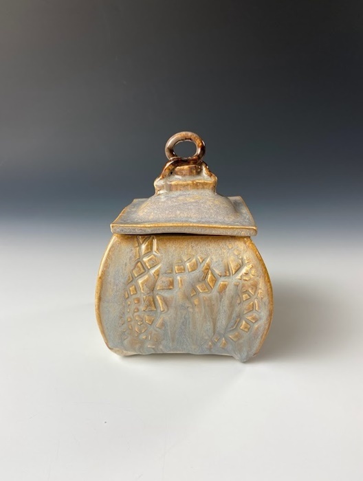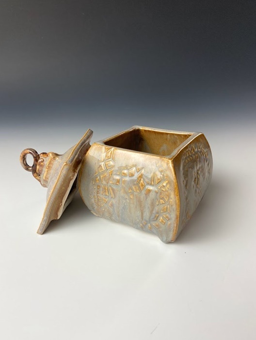 Each piece is a handmade, one-of-a-kind piece of art sculpted from soft slab stoneware clay. It's fired once, hand-glazed and fired again.